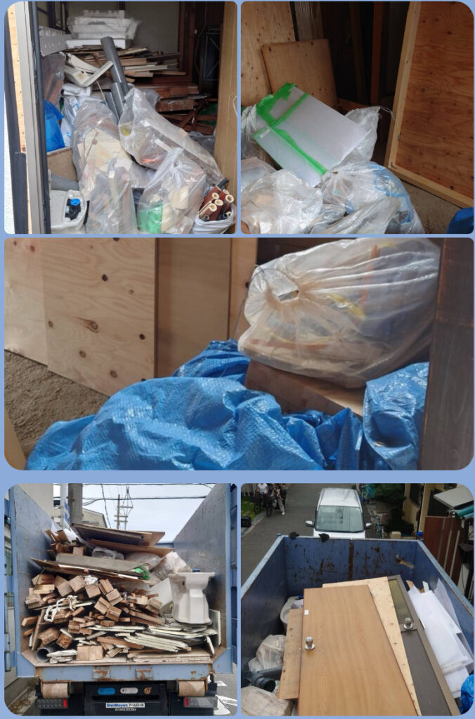 O工務店様倉庫廃材引取り、R工務店様老人ホームリフォーム現場、R葬儀メンテナンス工場コンテナ交換、T工務店様クリニック解体現場、その他コンテナ交換4件、